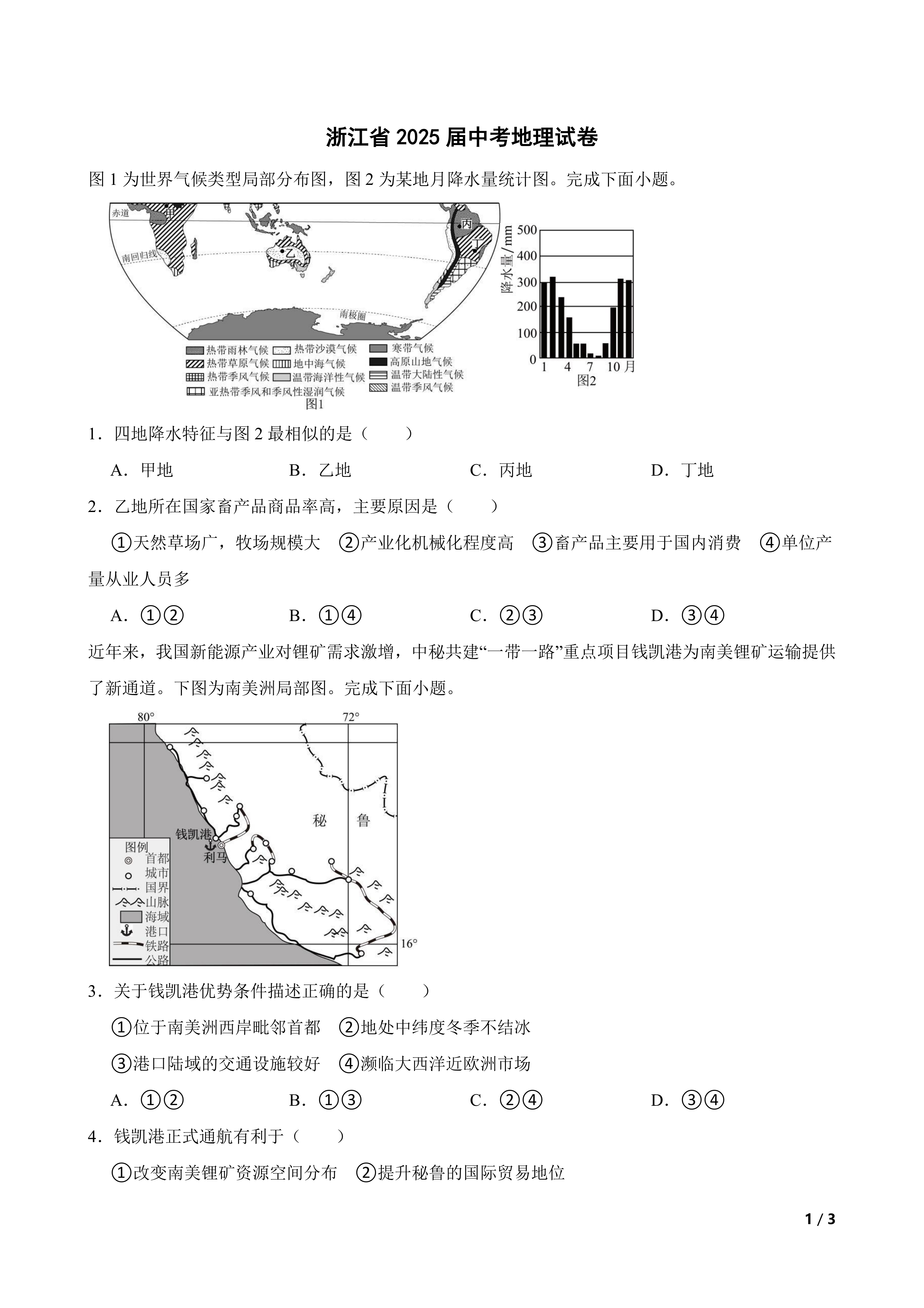 [中考真题]浙江省2025届中考地理试卷 时间:2025-10-27 热度:°C 加入收藏 我要投稿 点赞() 中考真题 上一篇:2025年山东省烟台市莱阳市中考一模地理试题(含答案) 下一篇:返回列表