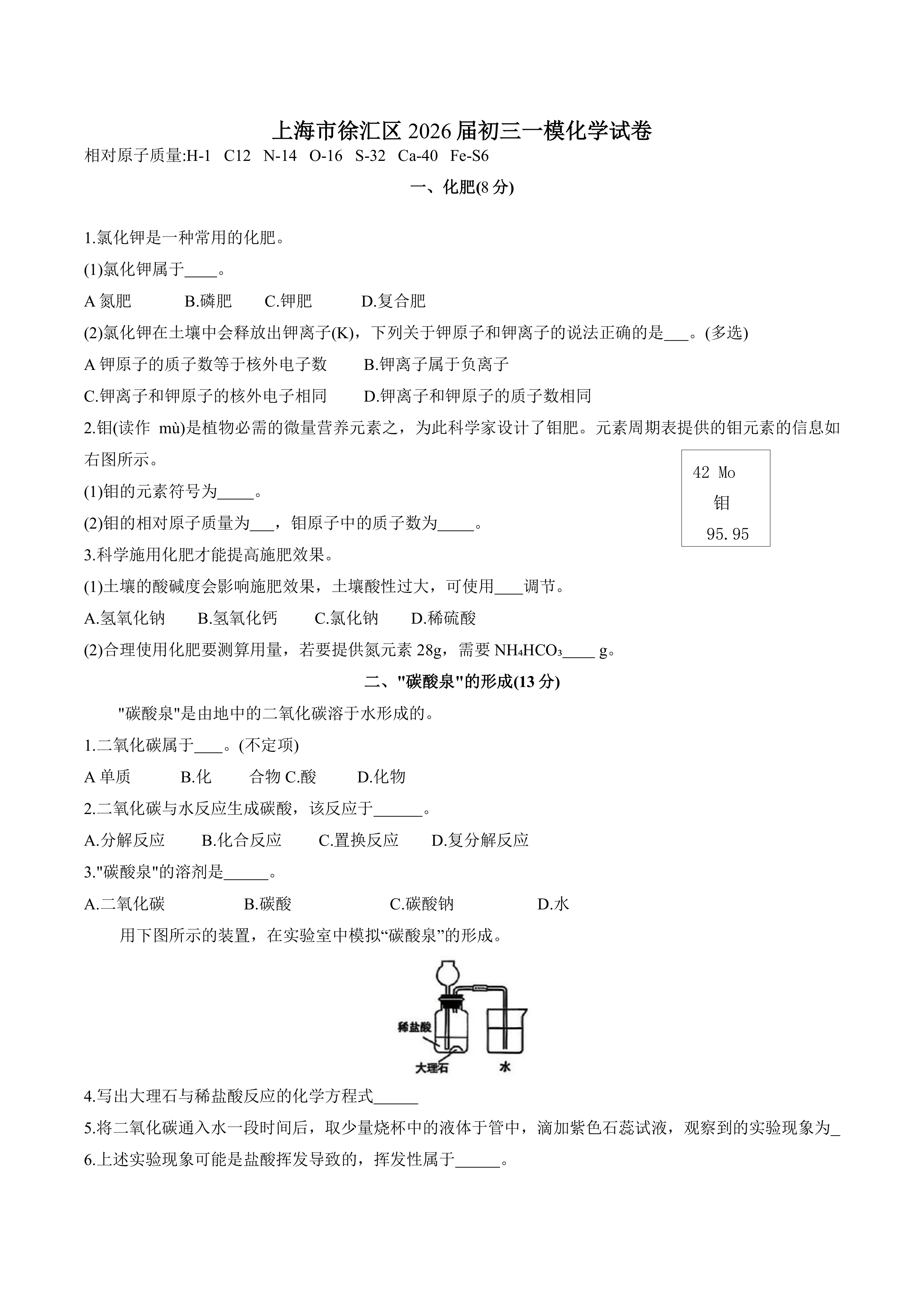 2026年上海市徐汇区九年级中考一模化学试卷(含答案) 时间:2026-04-08 热度:°C 加入收藏 我要投稿 点赞() 2026一模 上一篇:2026年上海市浦东新区中考一模九年级化学试卷(含答案) 下一篇:返回列表