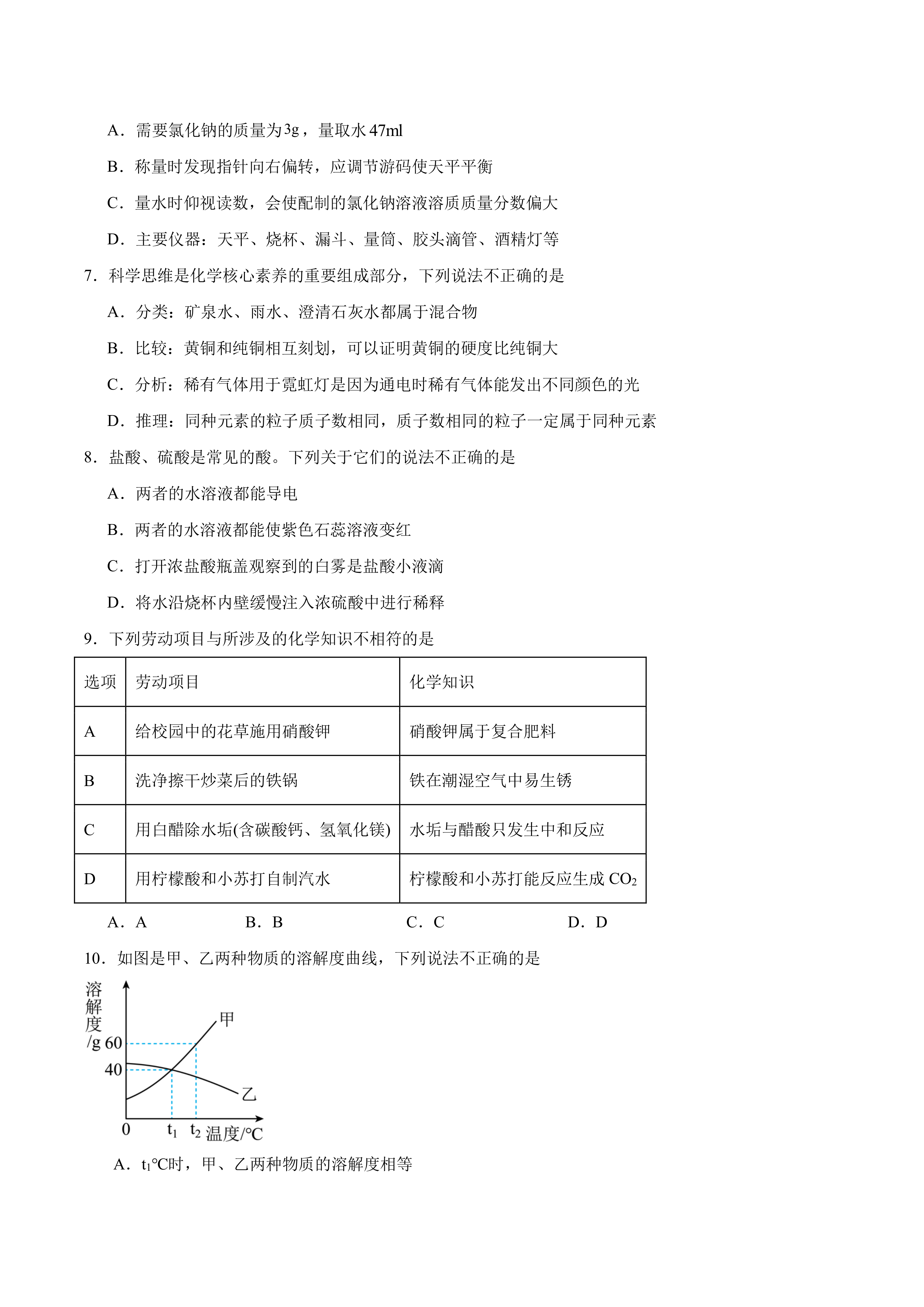 2026年辽宁省中考化学模拟试题(六)(含答案)