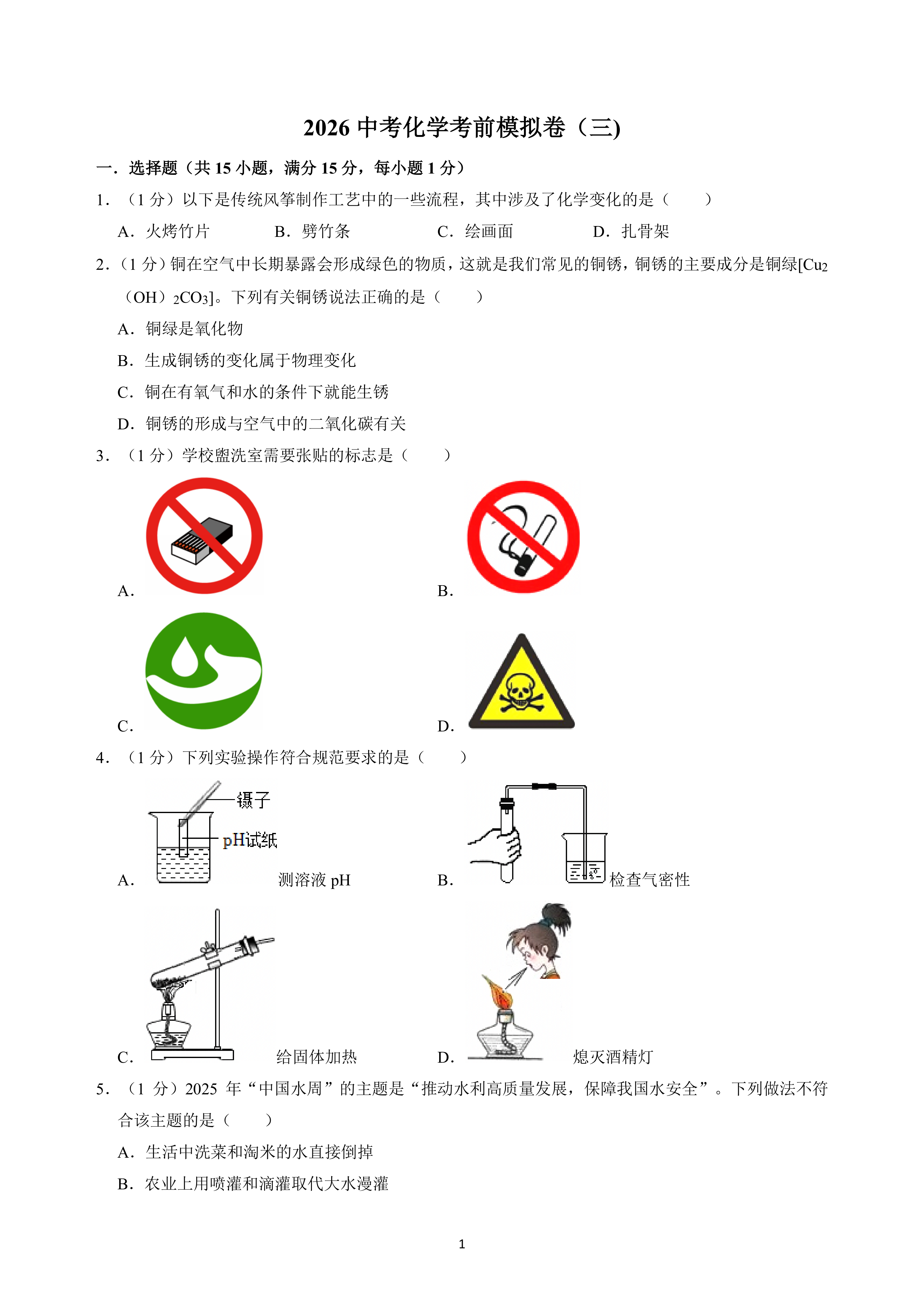 2026年中考化学考前模拟卷(三)