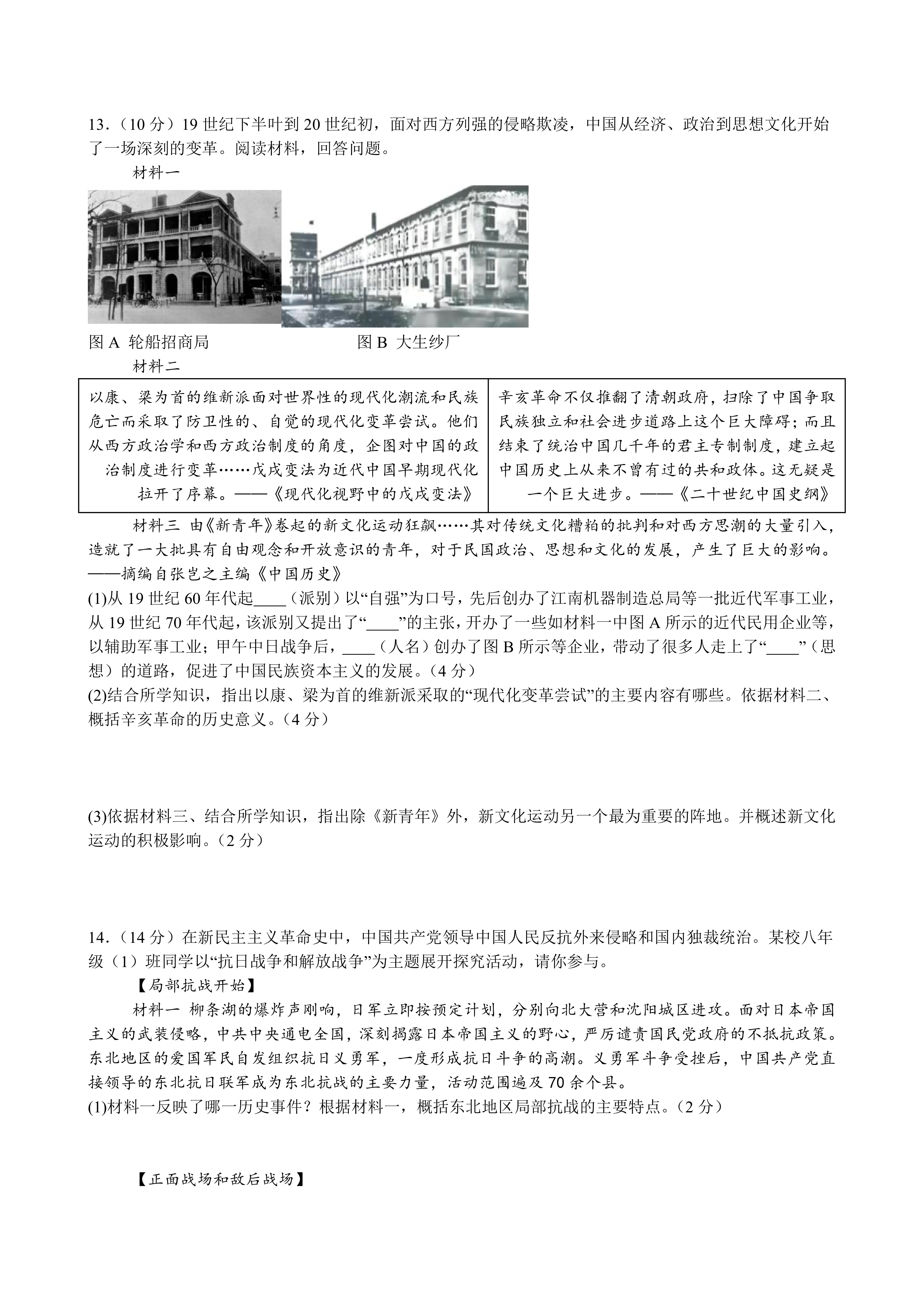 陕西省西安市2024-2025学年八年级上学期期末历史试卷(含答案)