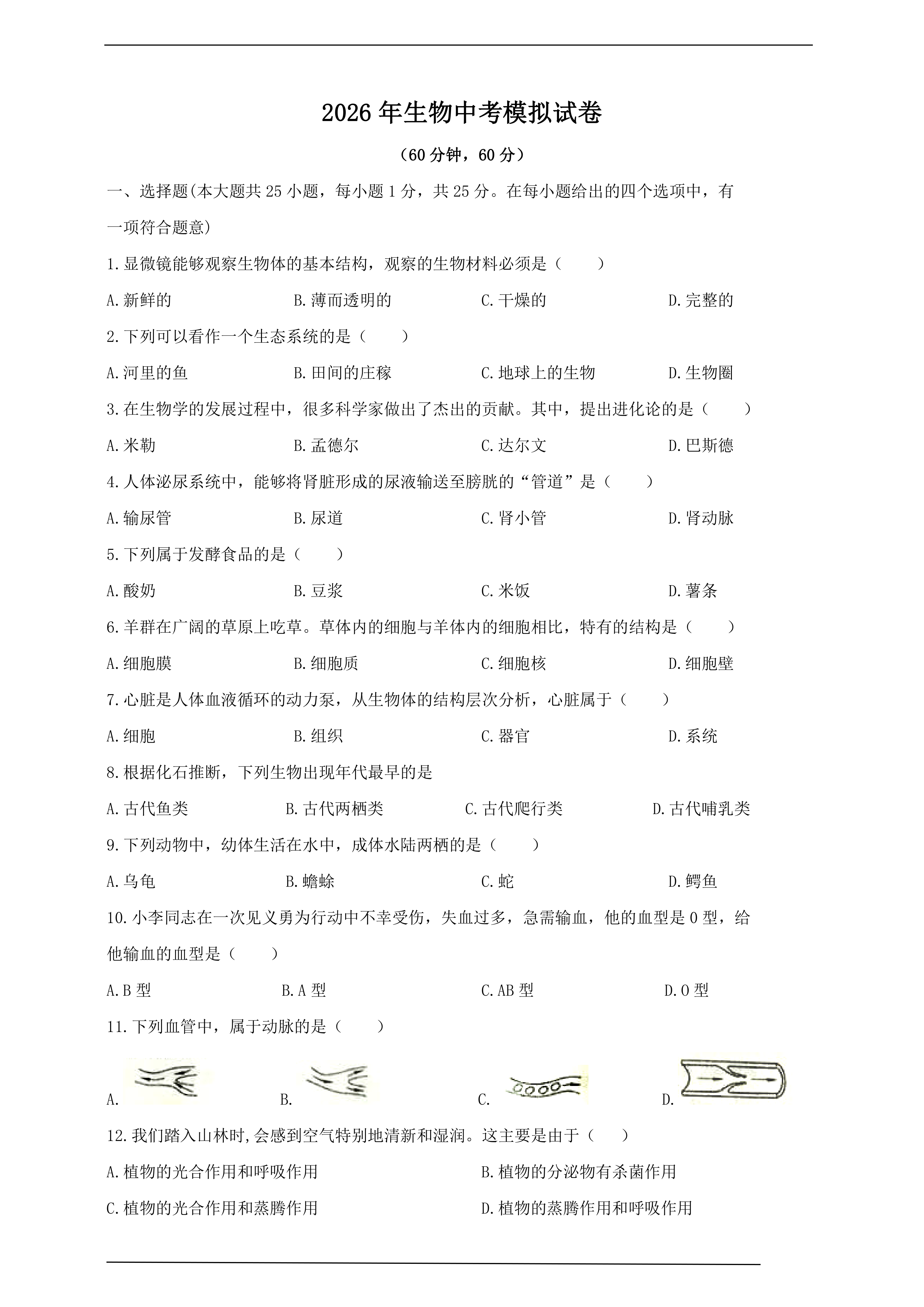 2026生物中考模拟试卷(五)(含答