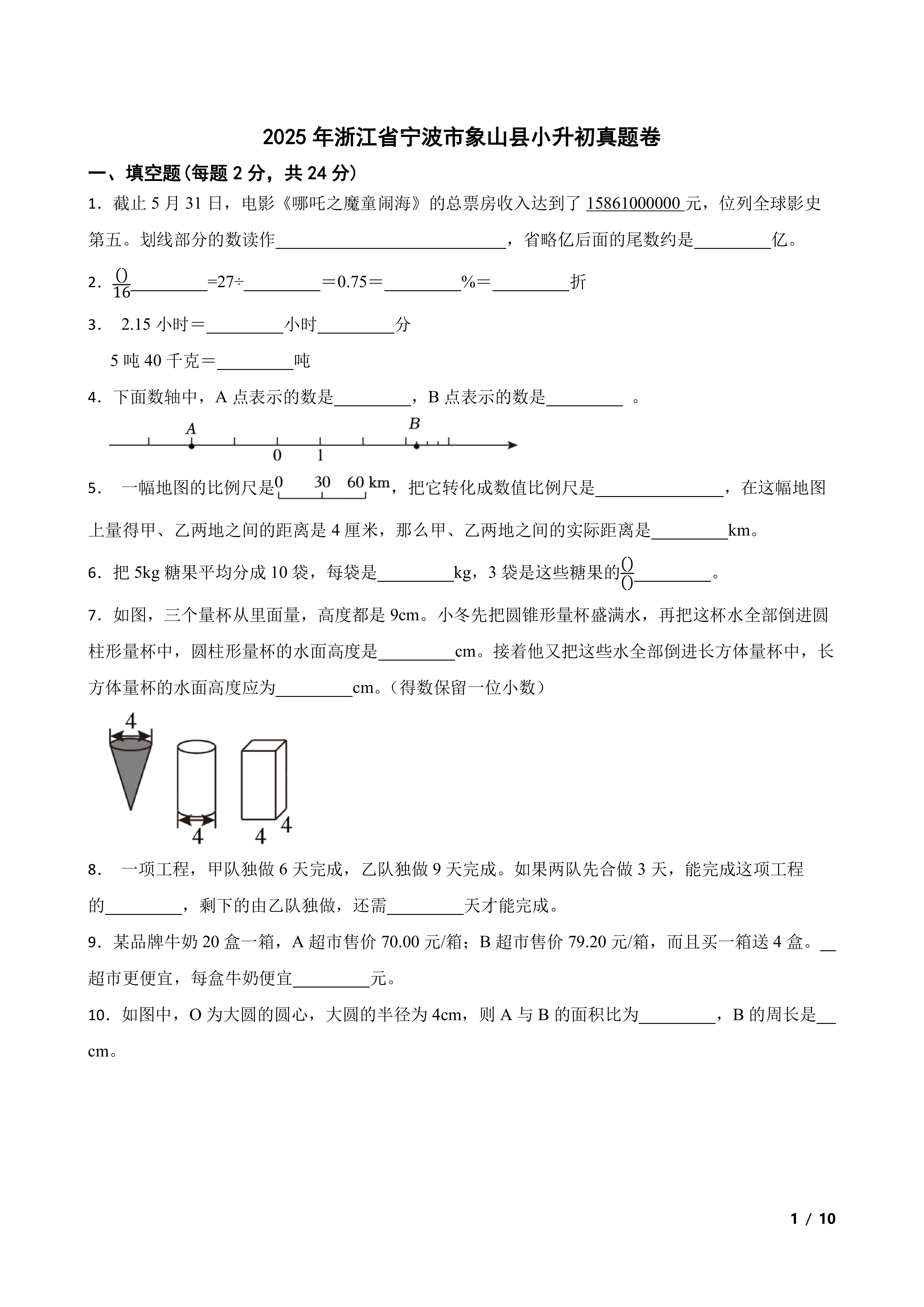 2025年浙江省宁波市象山县小升初真题卷