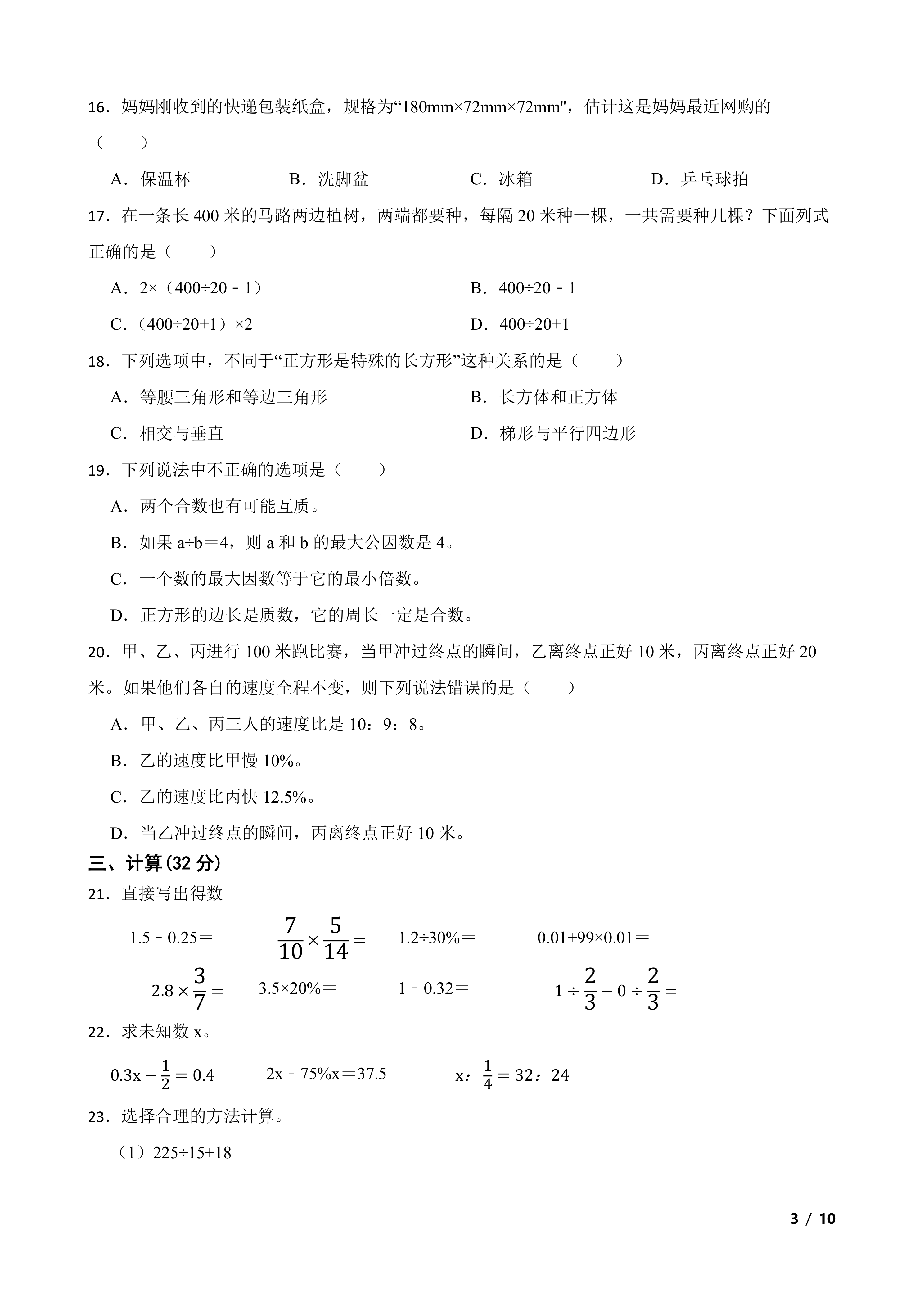 北师大版小升初数学试卷