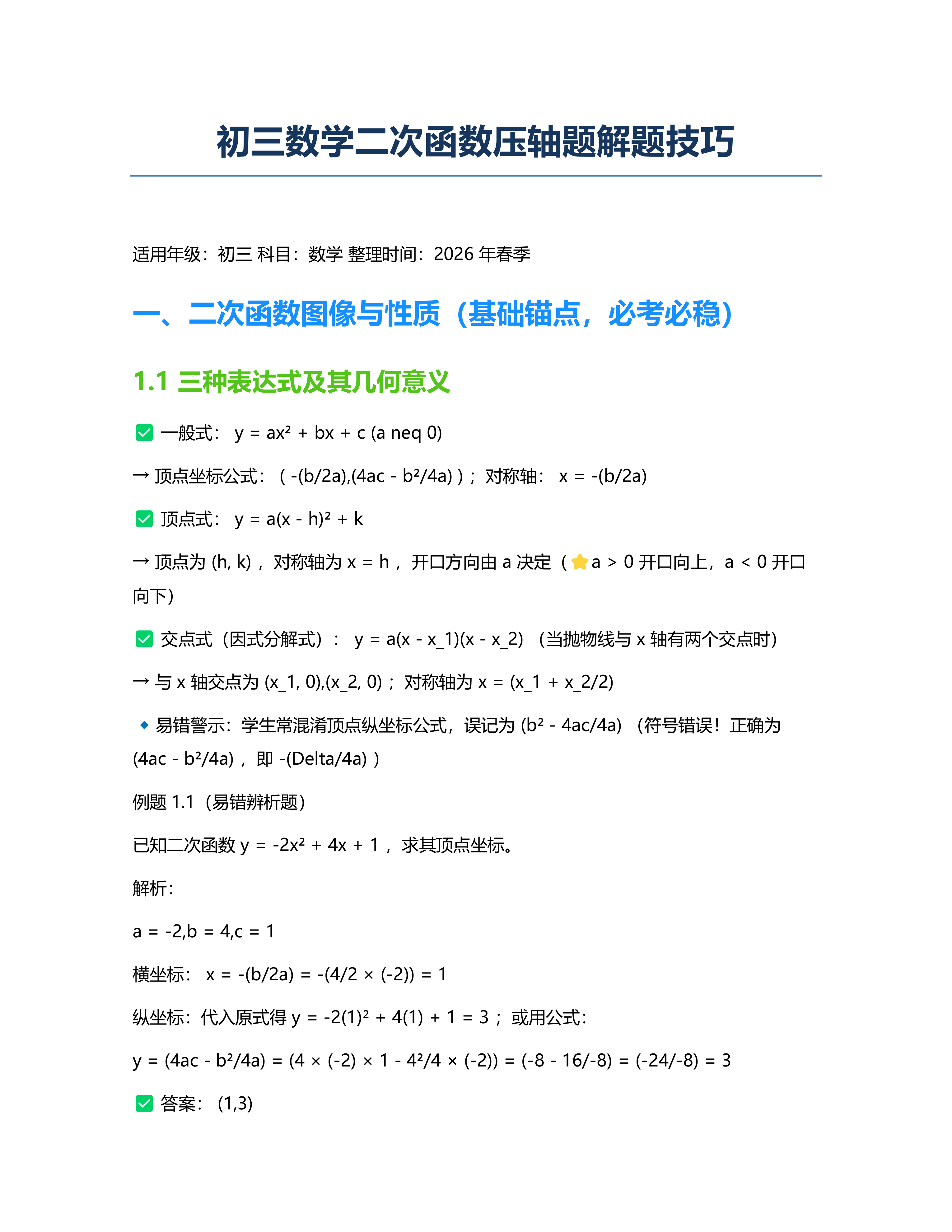 初三数学二次函数压轴题解题技巧