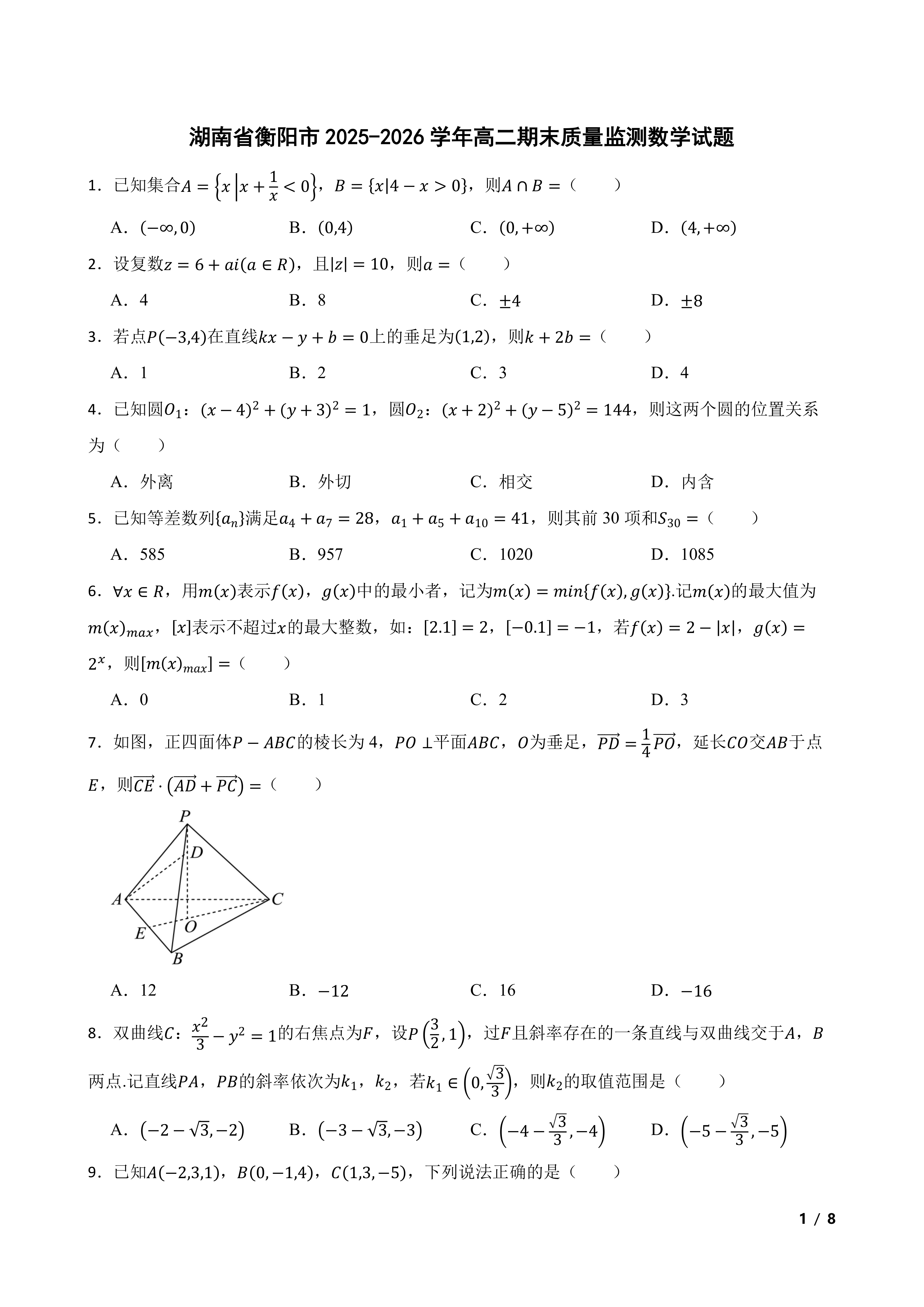 湖南省衡阳市2025-2026学年高二期末质量监测数学试题 时间:2026-03-23 热度:°C 加入收藏 我要投稿 点赞() 20252026 上一篇:浙江省金华市十校2023-2024学年高二下学期6月期末调研考试数学试题 下一篇:返回列表
