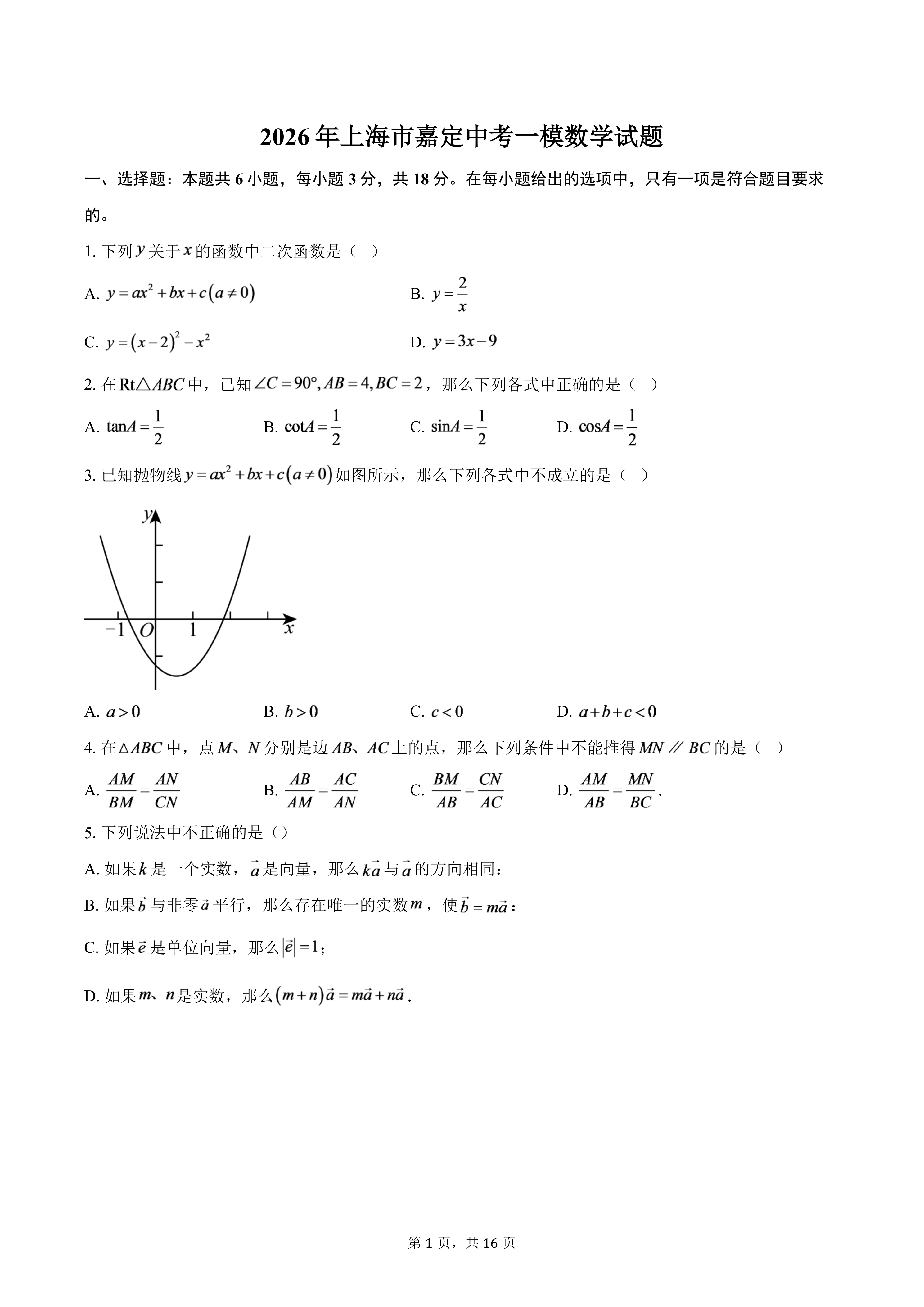 2026年上海市嘉定中考一模数学试题(含答案) 时间:2026-04-03 热度:°C 加入收藏 我要投稿 点赞() 2026一模 上一篇:广东省深圳市南山区育才教育集团2025-2026学年九年级下学期中考一模试题数学试卷 下一篇:返回列表