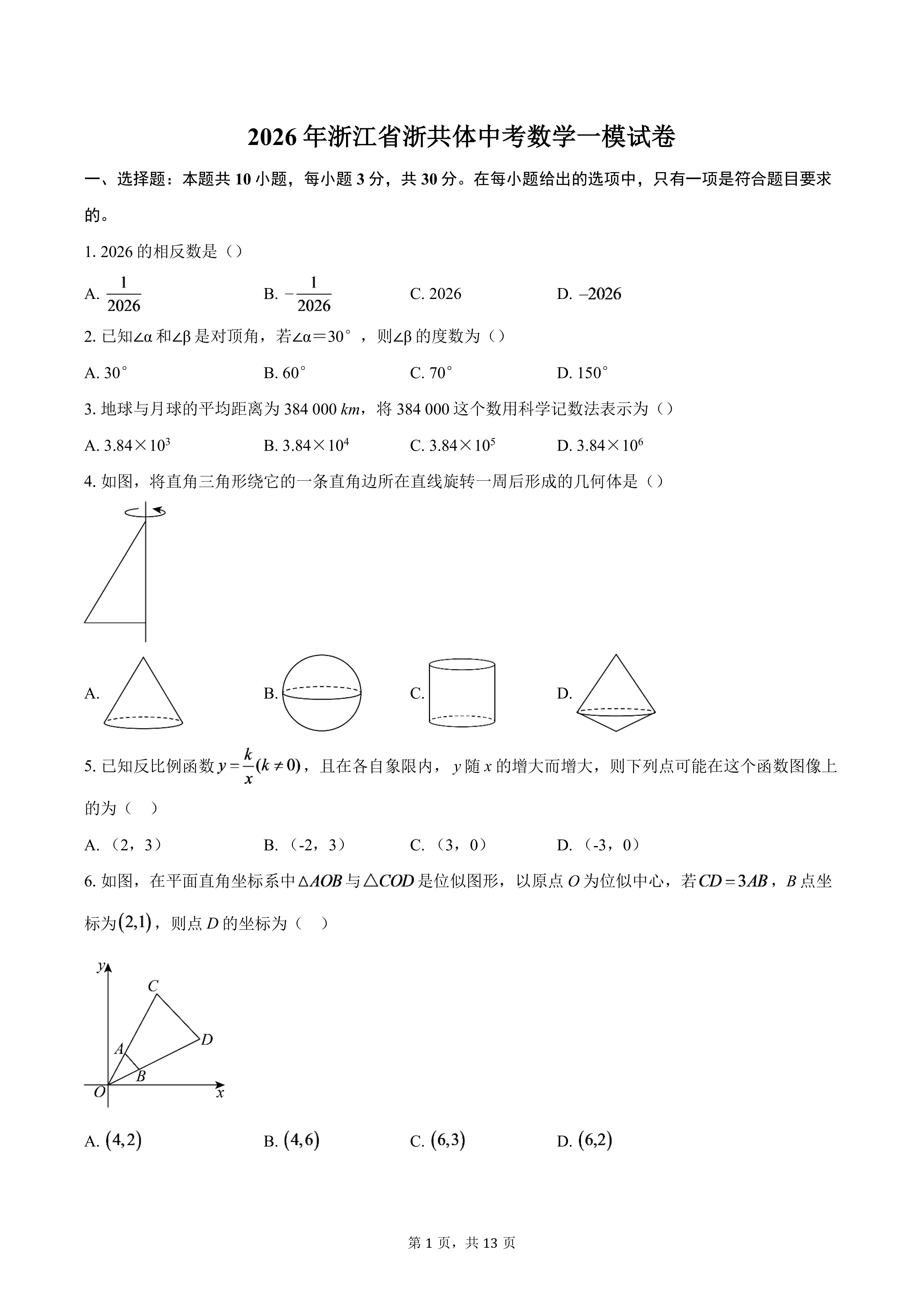 2026年浙江省浙共体中考数学一模试卷(含答案) 时间:2026-04-03 热度:°C 加入收藏 我要投稿 点赞() 2026浙共体 上一篇:浙江省初中名校共同体2026年中考一模数学试题(3月) 下一篇:返回列表