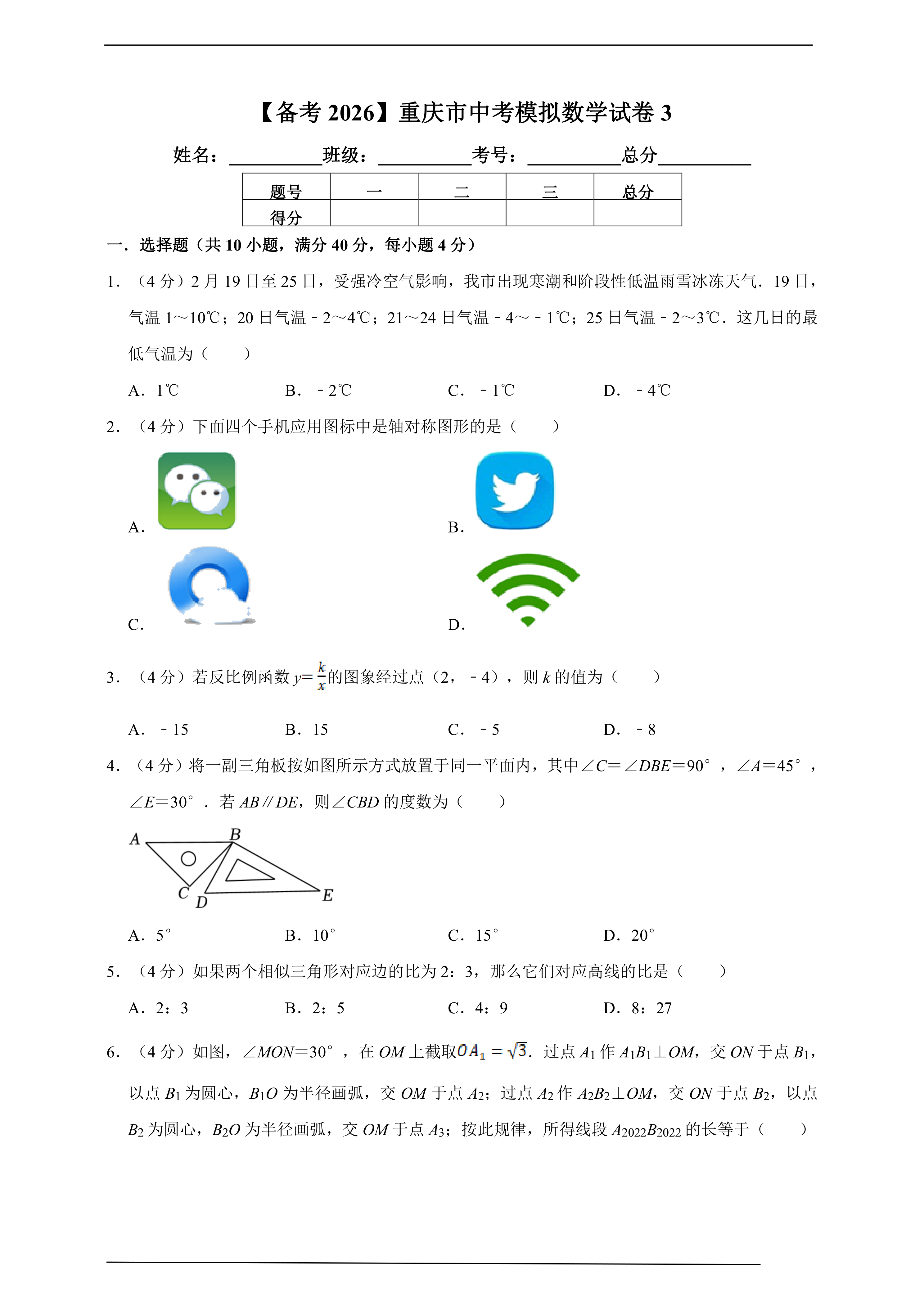 【备考2026】重庆市中考模拟数学试卷3(含解析) 时间:2026-04-28 热度:°C 加入收藏 我要投稿 点赞() 2026数学试卷 上一篇:2026年大庆中考数学模拟卷2(含答案) 下一篇:返回列表