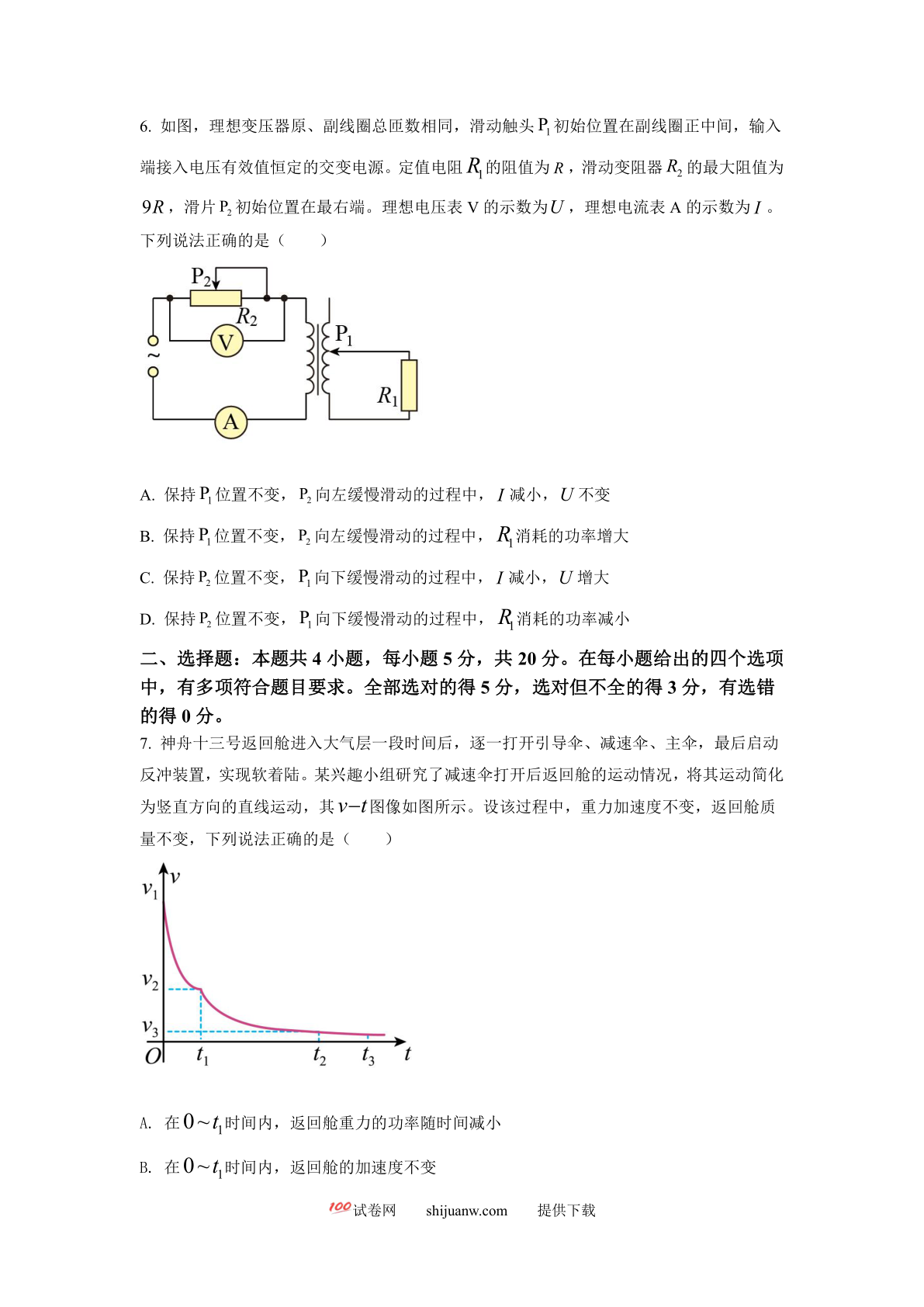 2022年新高考辽宁物理高考真题(解