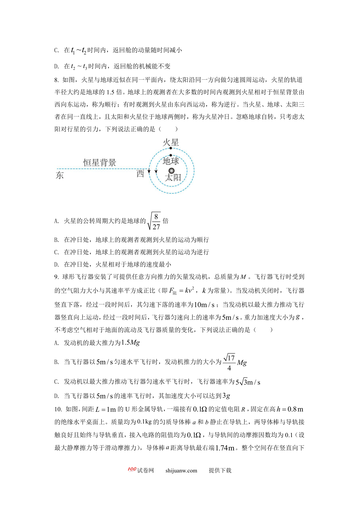 2023年高考新课标理综物理真题(原