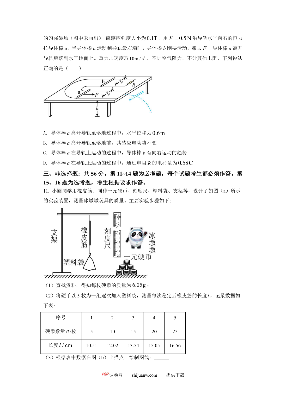 2023年高考湖南卷物理真题(原卷版