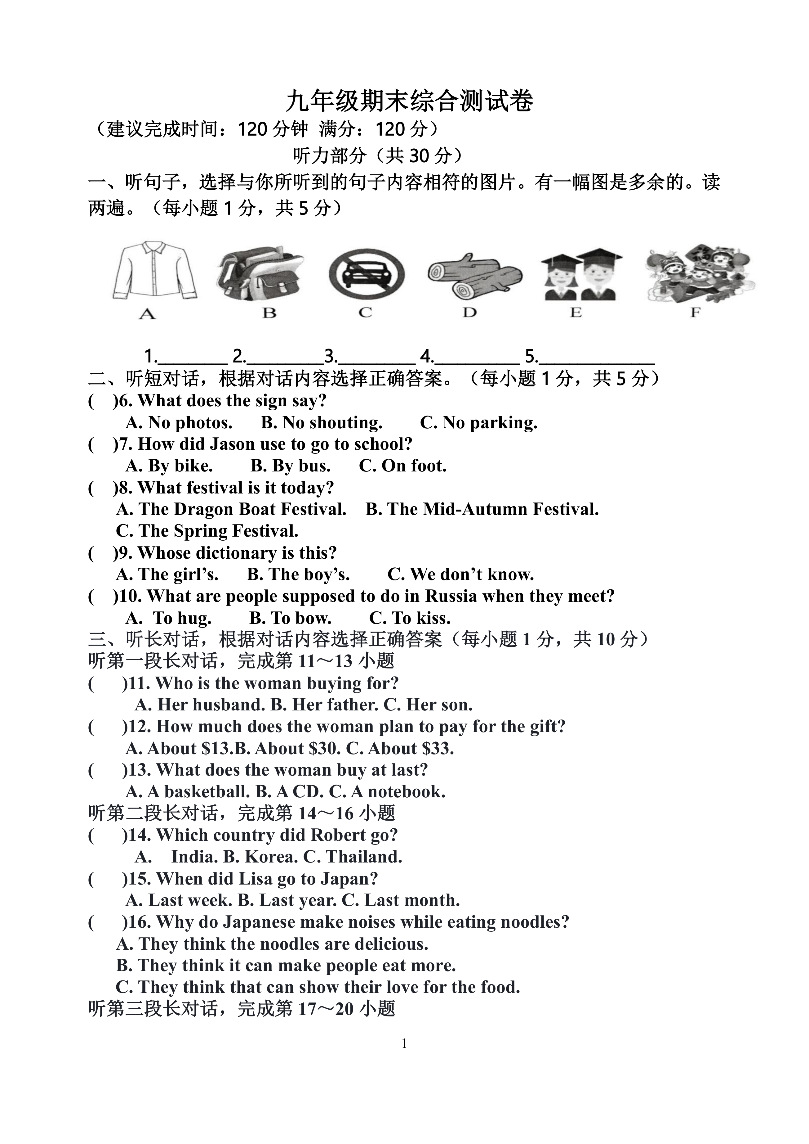 九年级英语期末综合卷最终版(6)