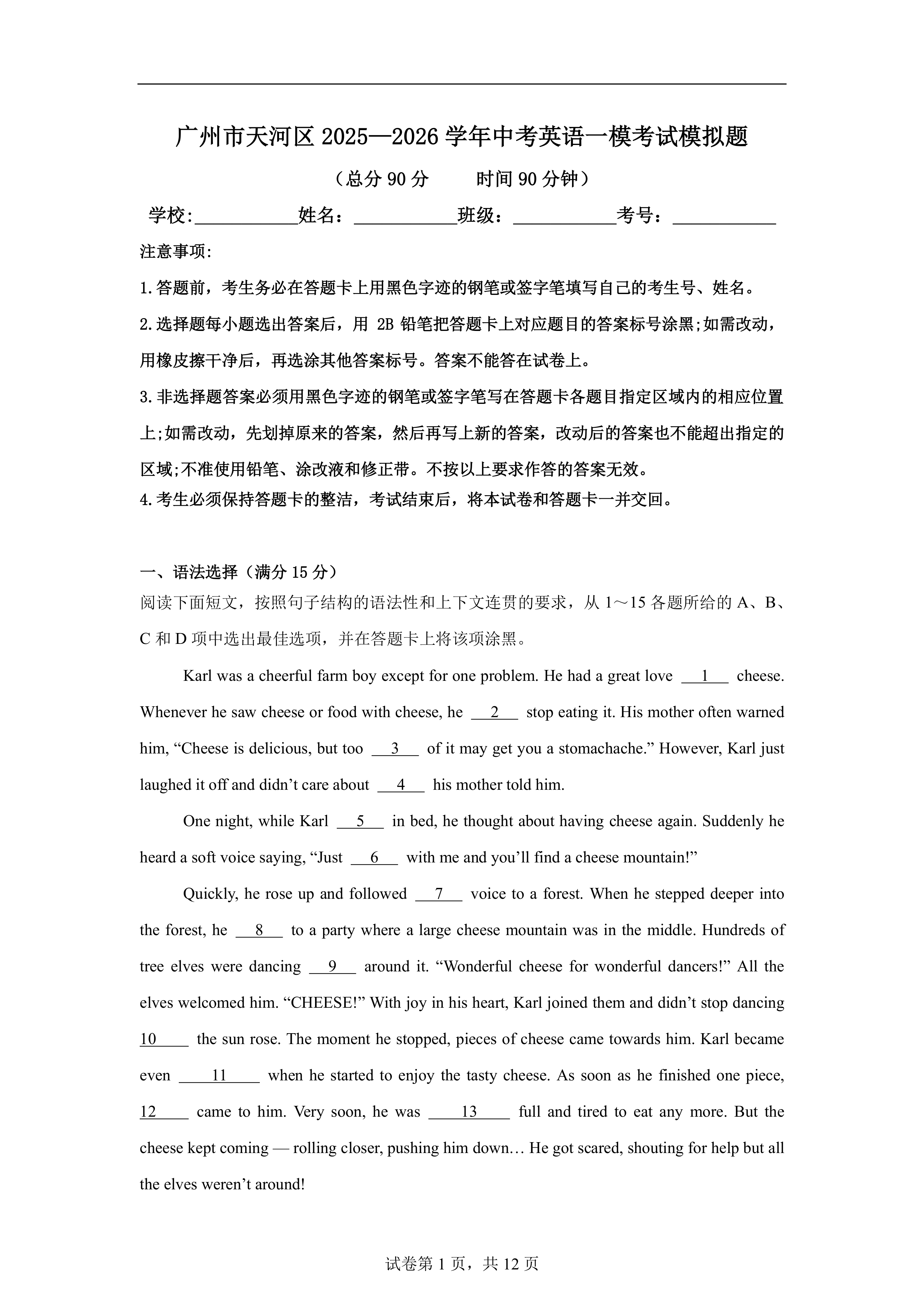 广州市天河区2025—2026学年中考英语一模考试模拟题(含答案解析) 时间:2026-04-08 热度:°C 加入收藏 我要投稿 点赞() 模拟题2025 上一篇:2026年上海市杨浦区中考英语一模试卷(含答案) 下一篇:返回列表