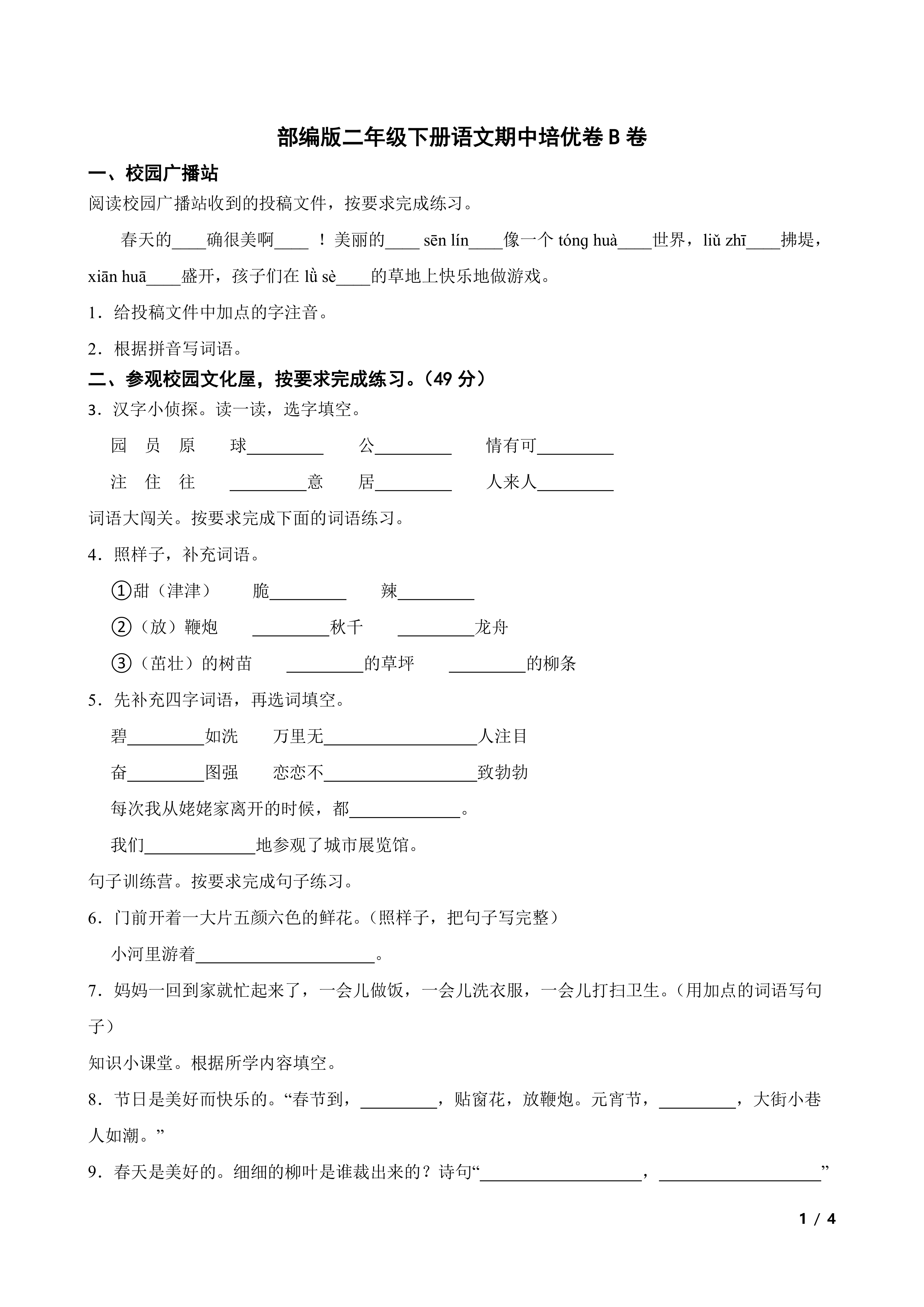 部编版二年级下册语文期中培优卷B卷 时间:2026-04-01 热度:°C 加入收藏 我要投稿 点赞() 部编版下册 上一篇:浙江省宁波市奉化区2023-2024学年二年级下学期语文期末试卷 下一篇:返回列表