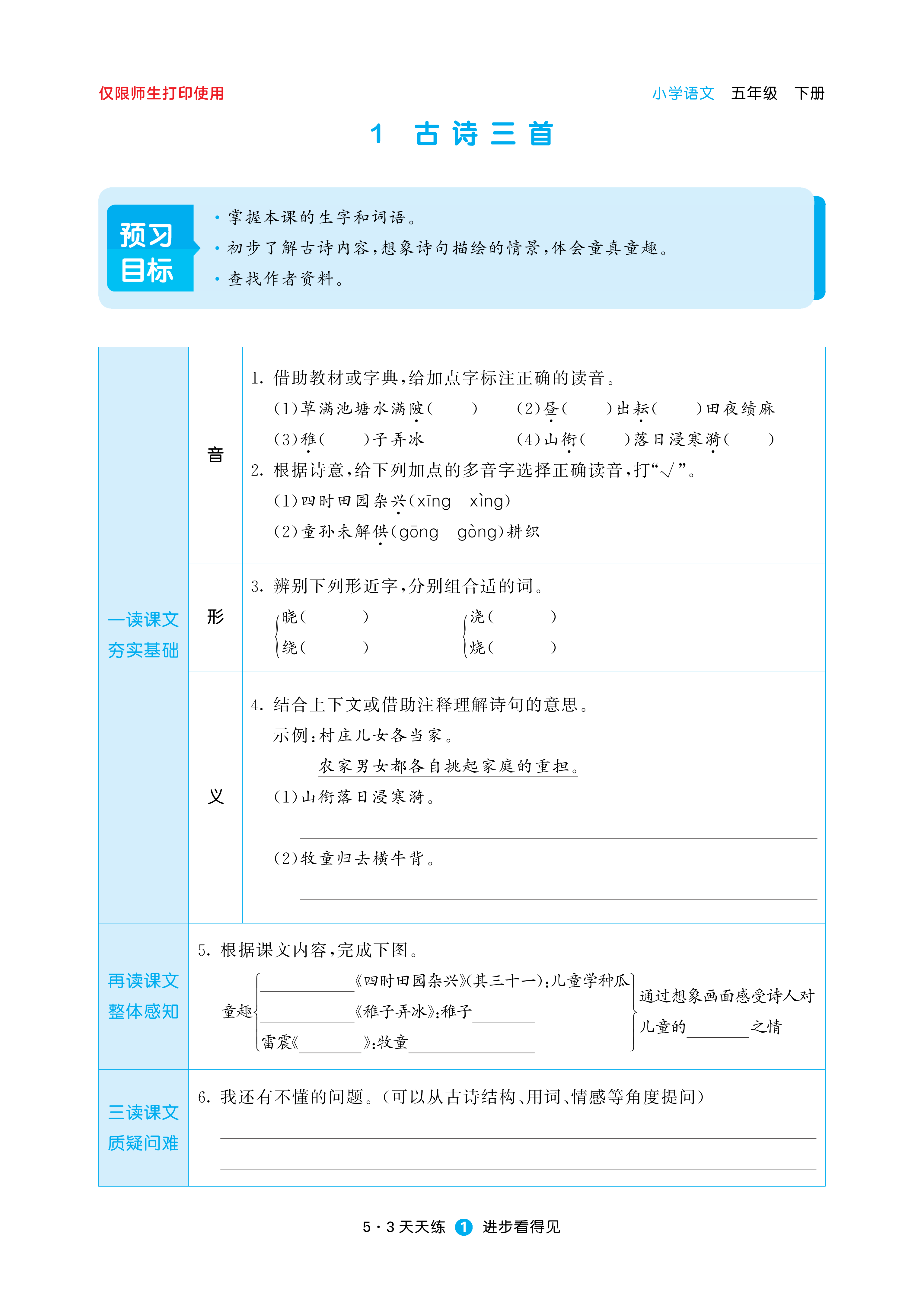 26春53天天练五下人教语文增值资源《预习册》 时间:2026-03-07 热度:°C 加入收藏 我要投稿 点赞() 2653 上一篇:上海市闵行区2024-2025学年五年级上学期期末考试语文试卷(有答案) 下一篇:返回列表