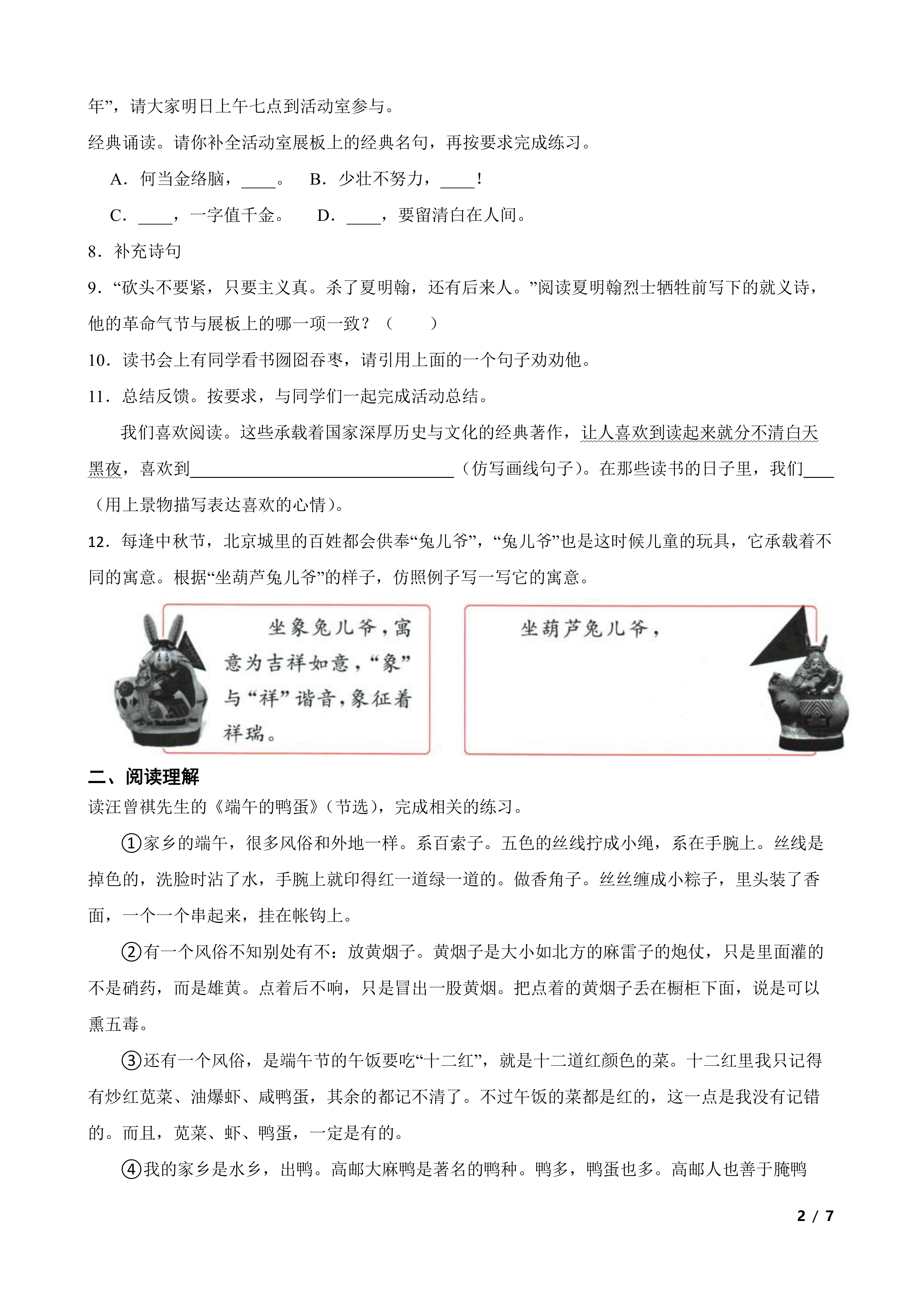 2024年小升初语文模拟卷二(有答案