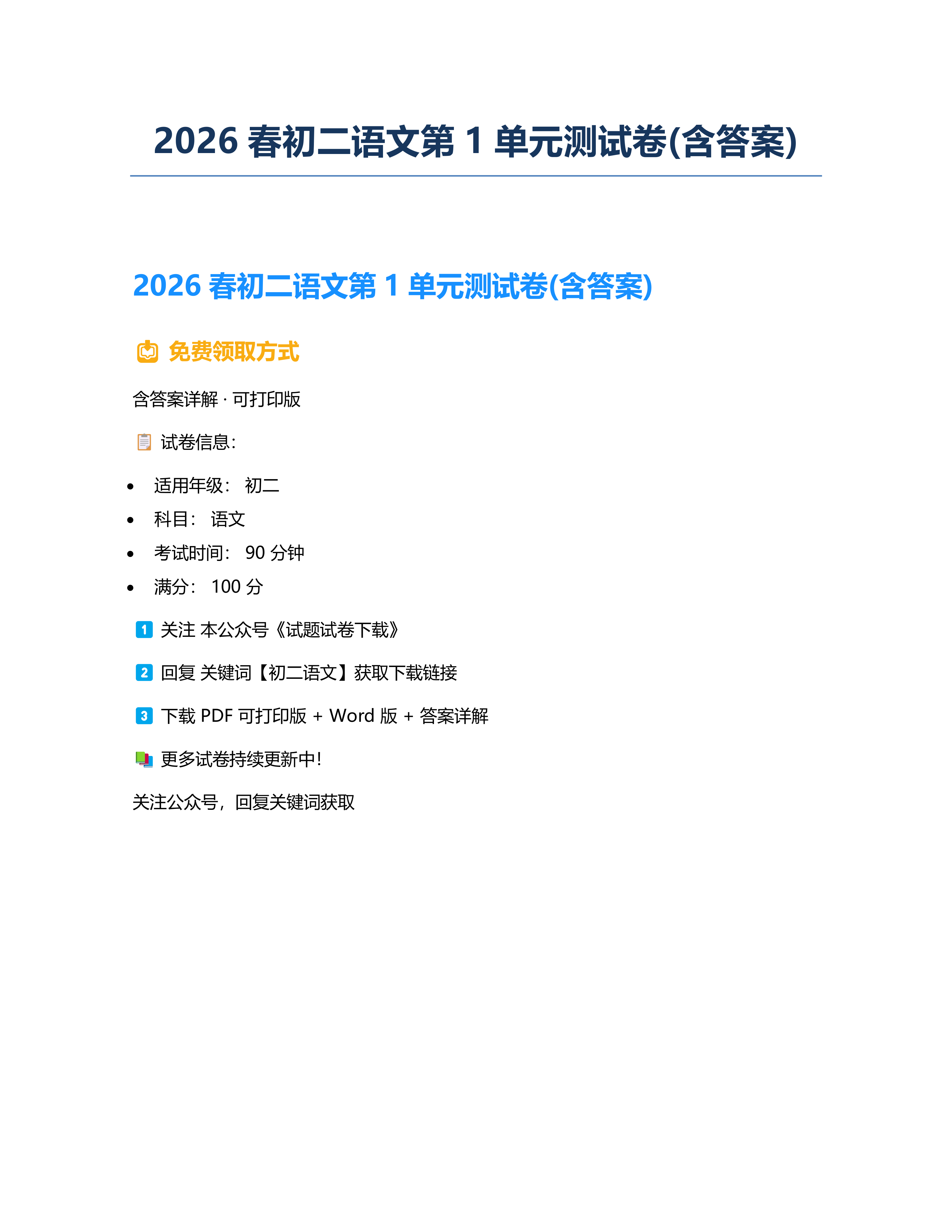 2026春初二语文第1单元测试卷(含答案) 时间:2026-03-20 热度:°C 加入收藏 我要投稿 点赞() 2026单元测试 上一篇:2024部编版八年级(上)期末考试语文试卷(含答案) 下一篇:返回列表