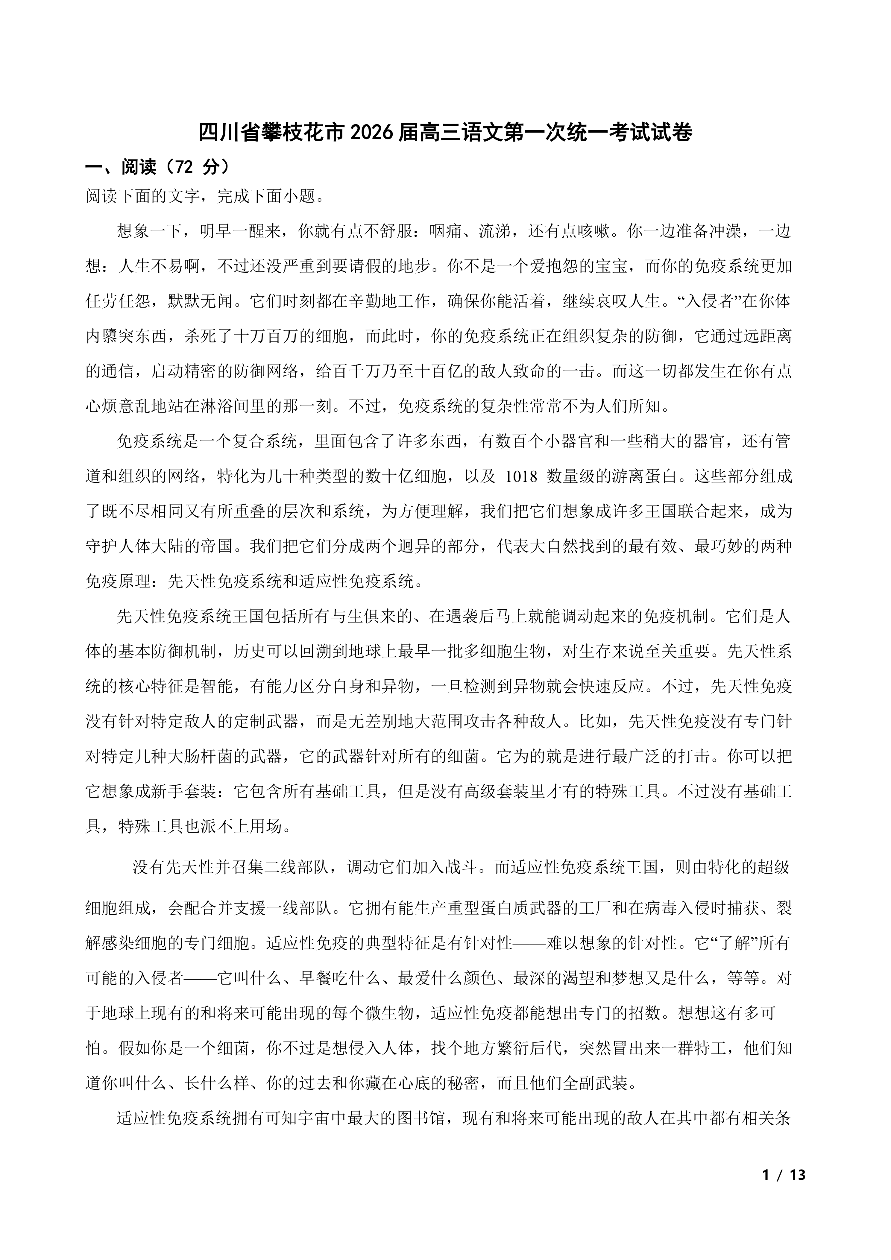 四川省攀枝花市2026届高三语文第一次统一考试试卷 时间:2026-04-03 热度:°C 加入收藏 我要投稿 点赞() 2026攀枝花市 上一篇:广西南宁市2026届普通高中毕业班语文第一次适应性测试试卷 下一篇:返回列表
