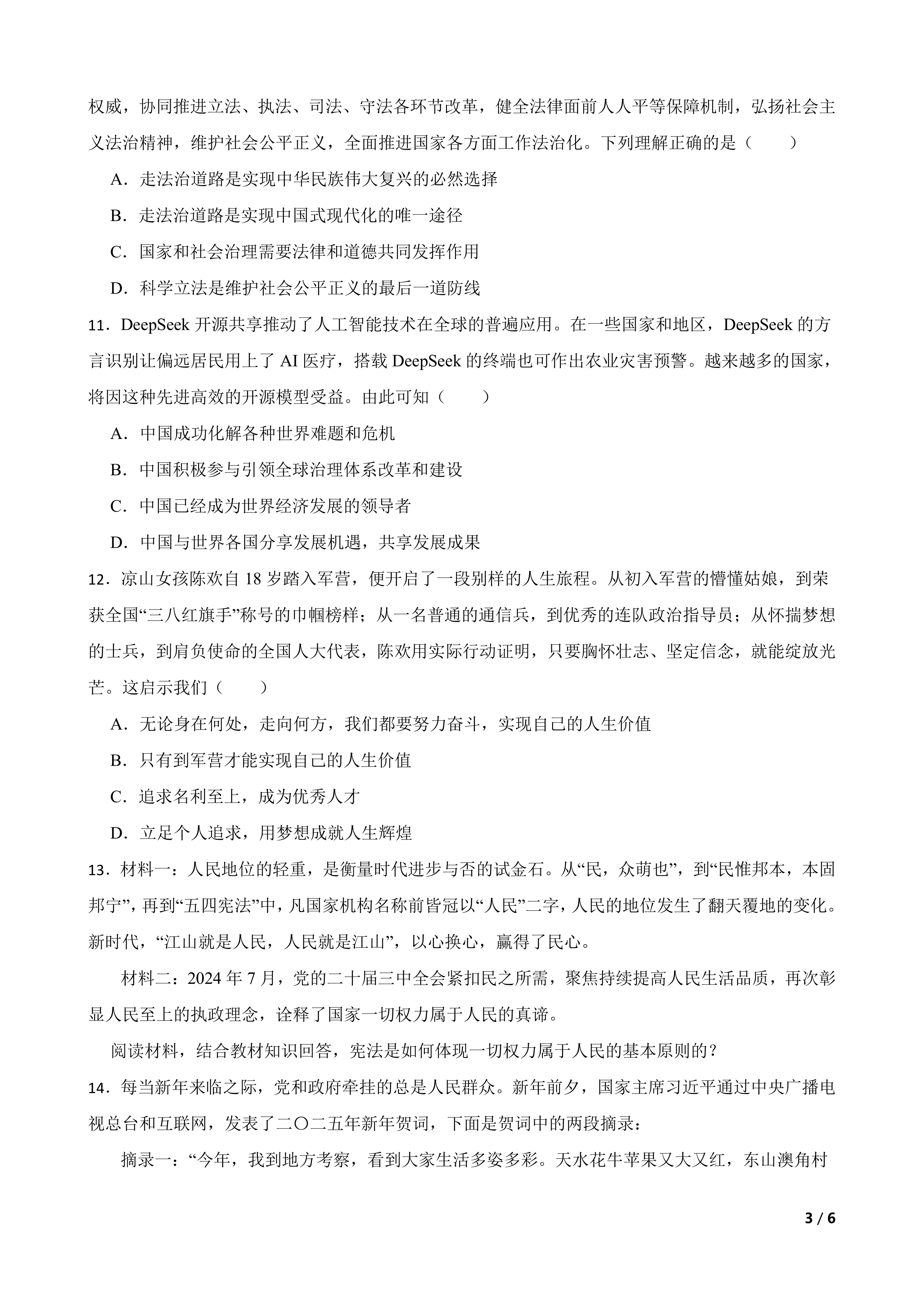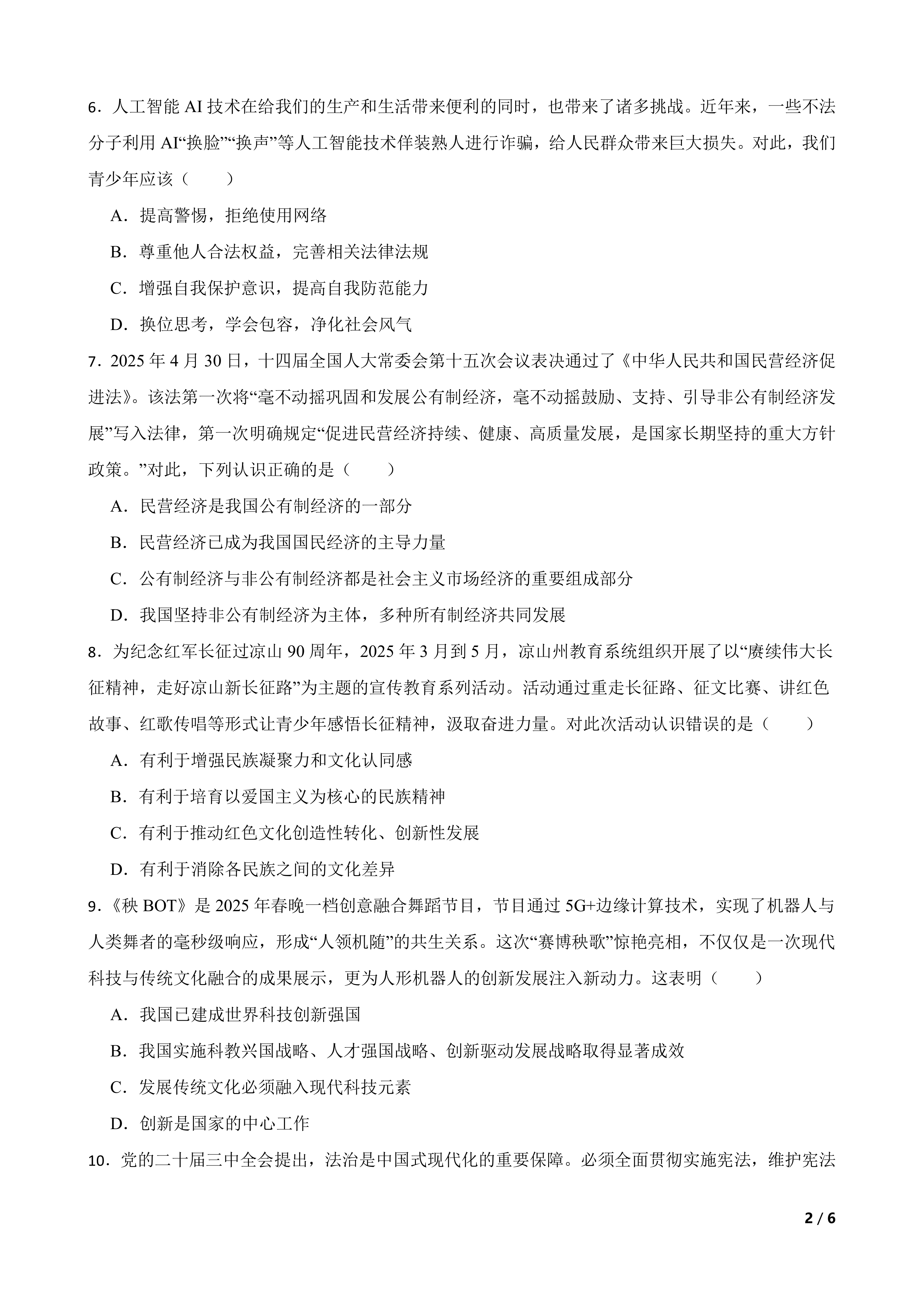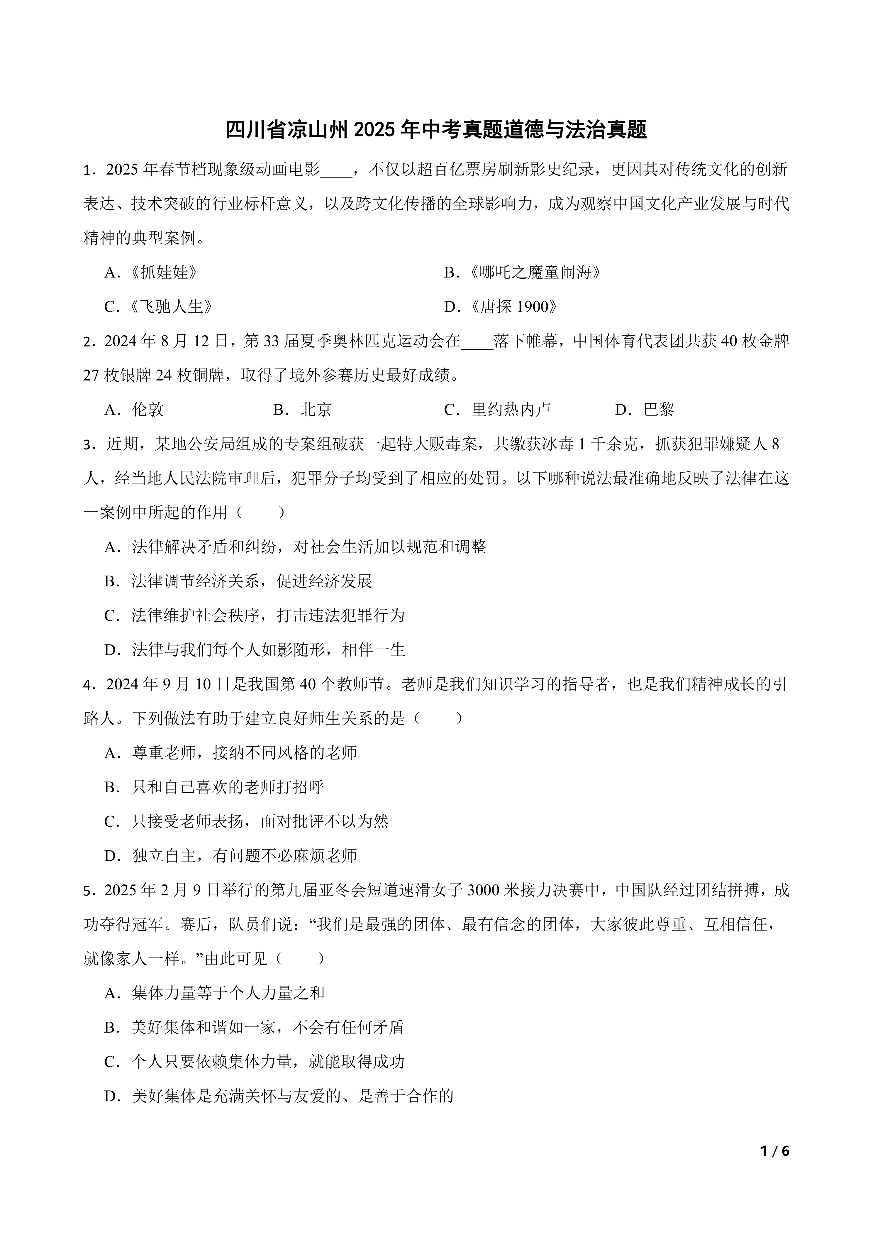 [中考真题]四川省凉山州2025年中考真题道德与法治真题 时间:2025-10-27 热度:°C 加入收藏 我要投稿 点赞() 真题中考 上一篇:[中考真题]宁夏2025年中考道德与法治真题 下一篇:返回列表