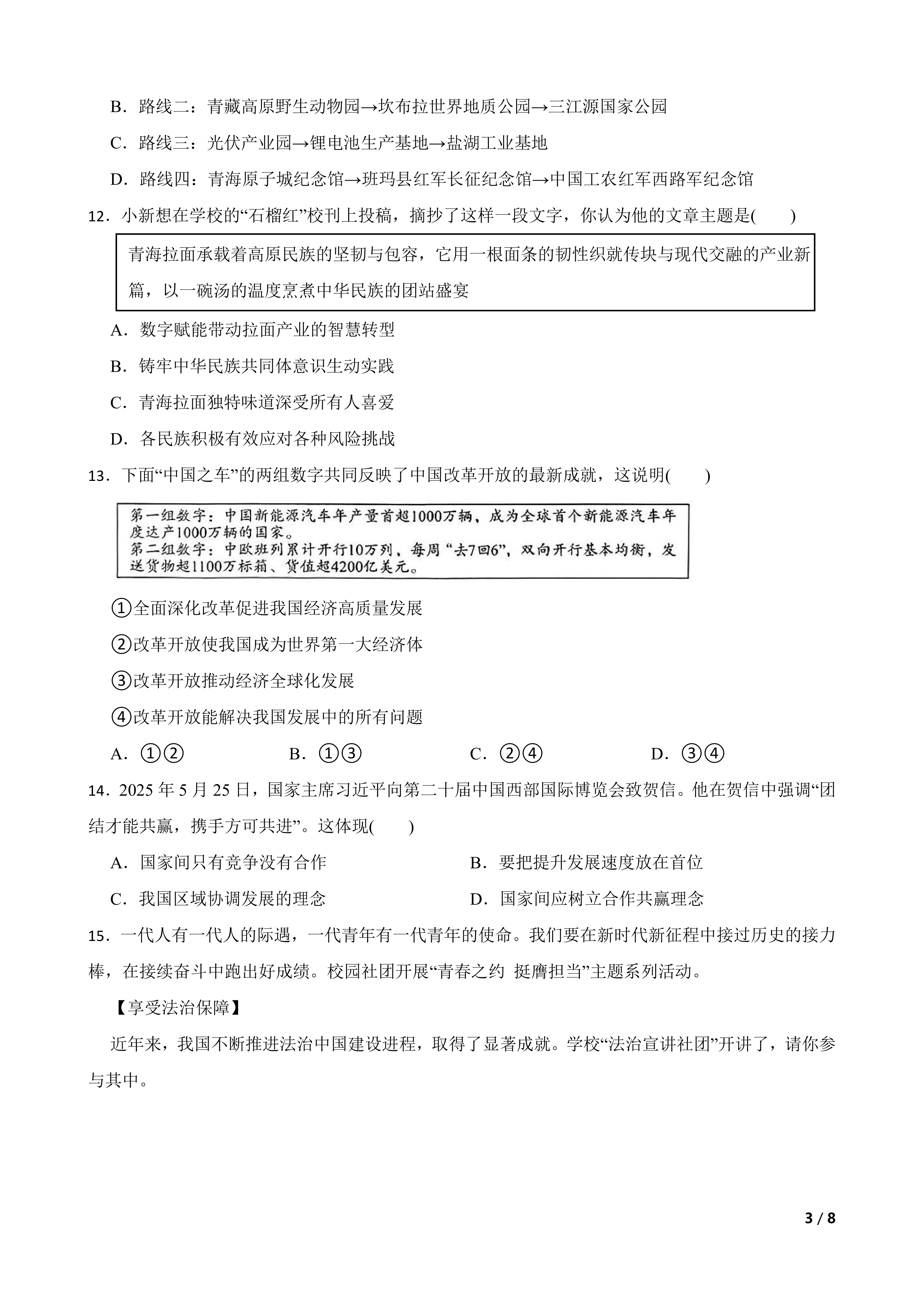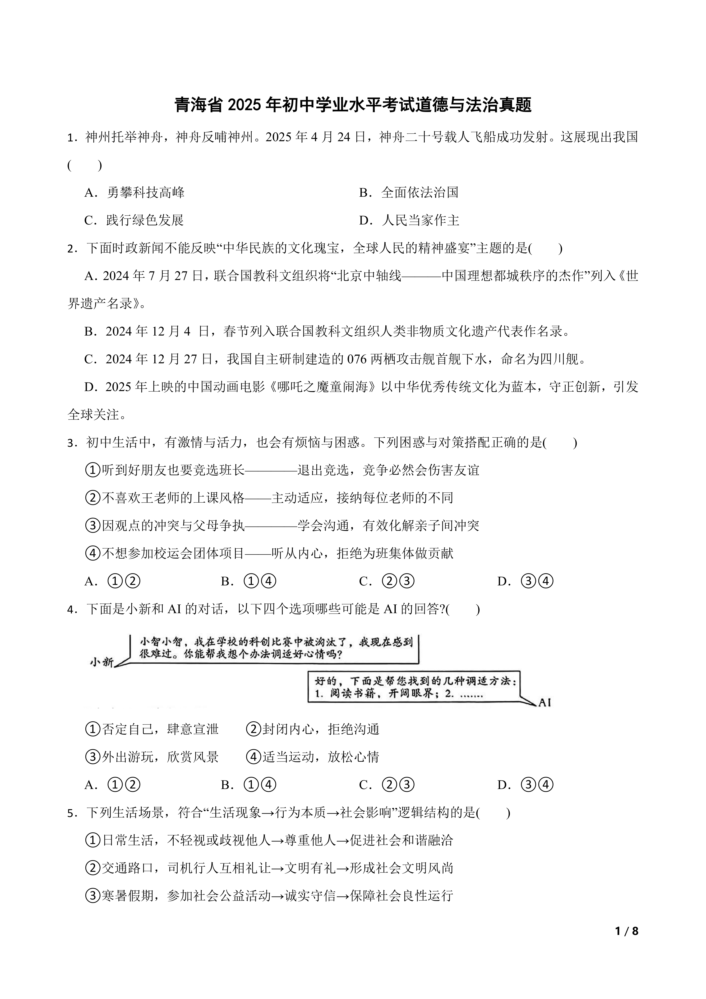 [中考真题]青海省2025年初中学业水平考试道德与法治真题 时间:2025-10-27 热度:°C 加入收藏 我要投稿 点赞() 真题2025 上一篇:[中考真题]青海省西宁市区2025年中考道德与法治试真题 下一篇:返回列表
