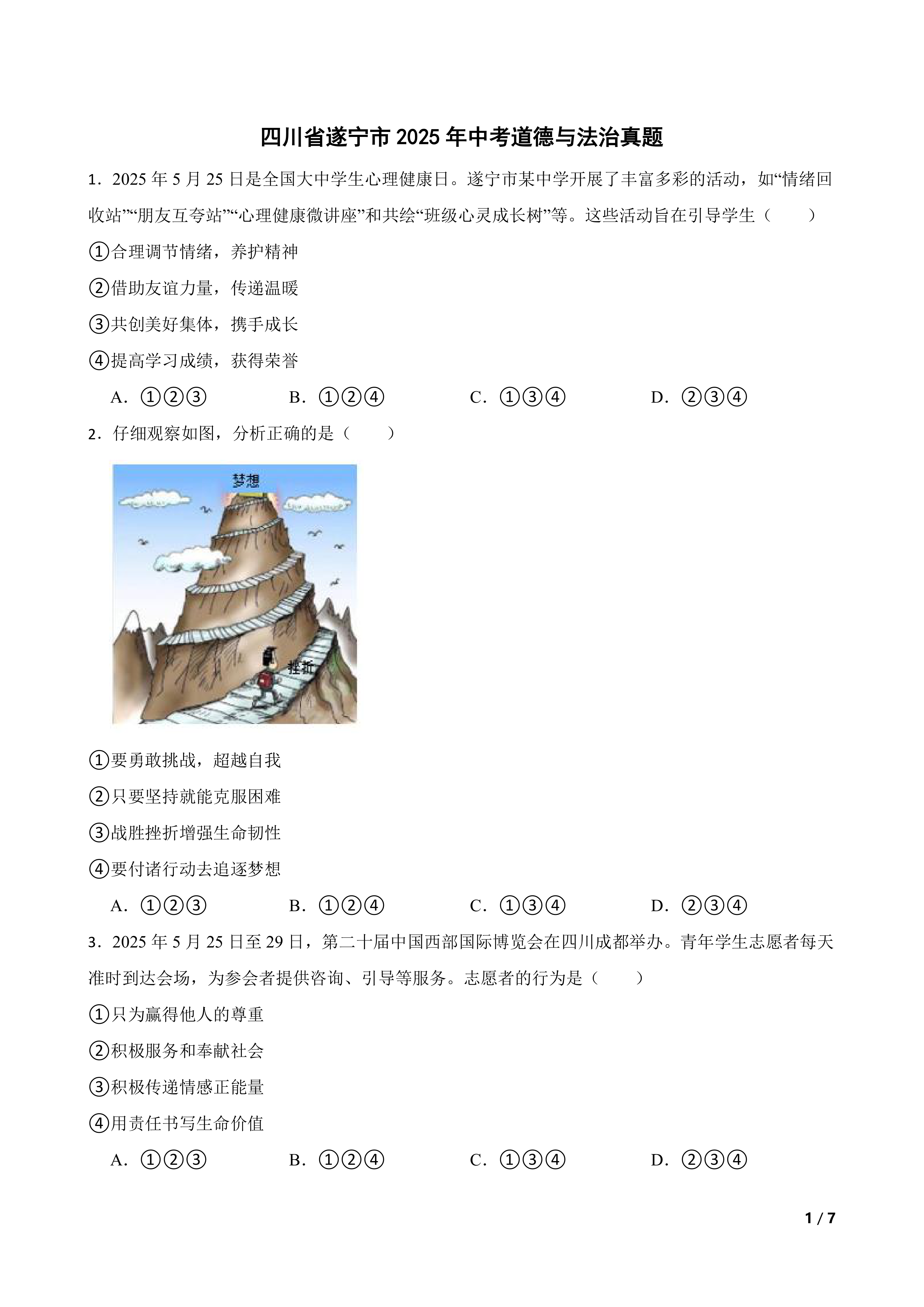 [中考真题]四川省遂宁市2025年中考道德与法治真题 时间:2025-10-27 热度:°C 加入收藏 我要投稿 点赞() 真题中考 上一篇:[中考真题]吉林省长春市2025年初中学业水平考试道德与法治真题 下一篇:返回列表