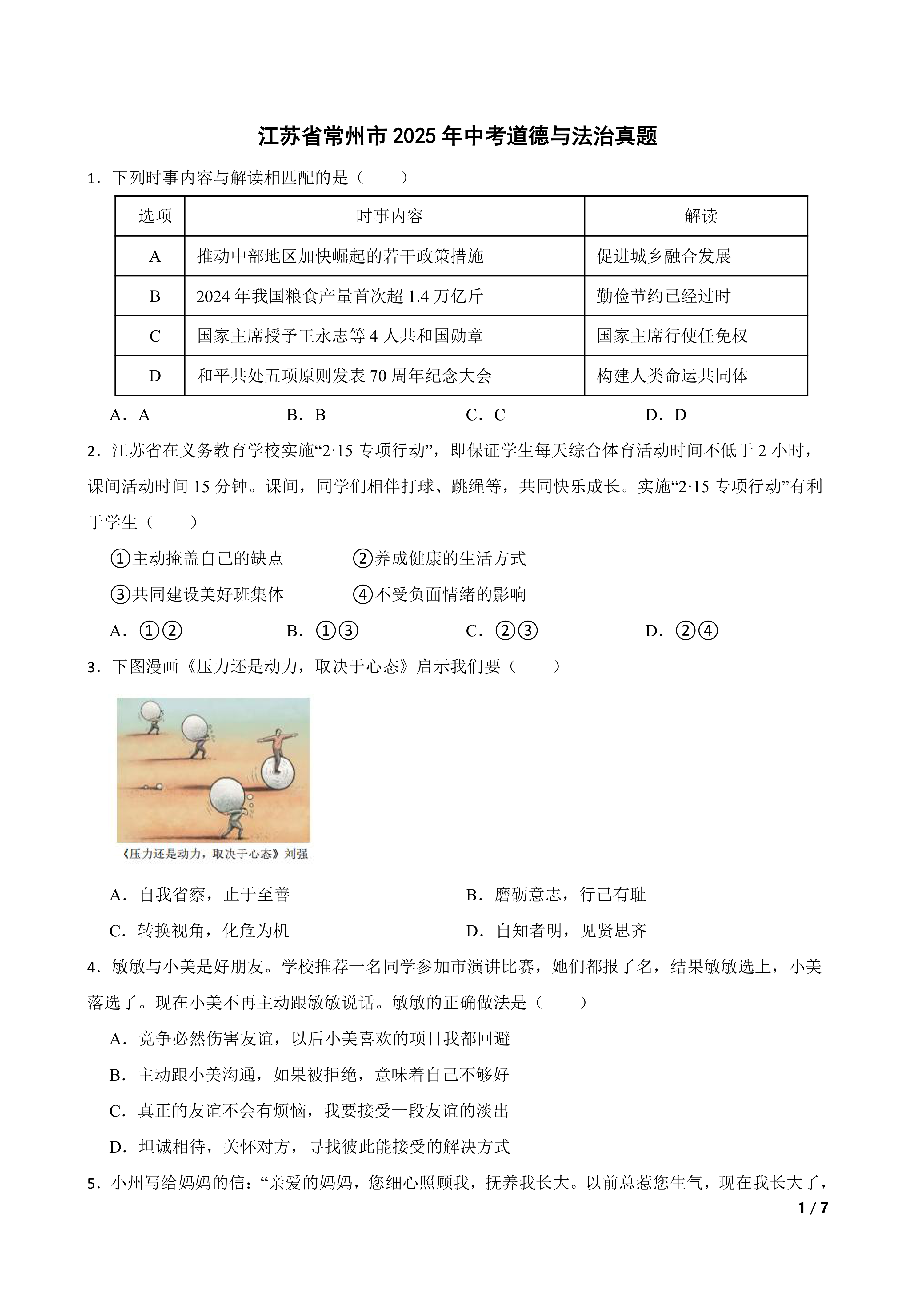 [中考真题]江苏省常州市2025年中考道德与法治真题 时间:2025-10-27 热度:°C 加入收藏 我要投稿 点赞() 真题中考 上一篇:[中考真题]江苏省宿迁市2025届中考道德与法治真题 下一篇:返回列表