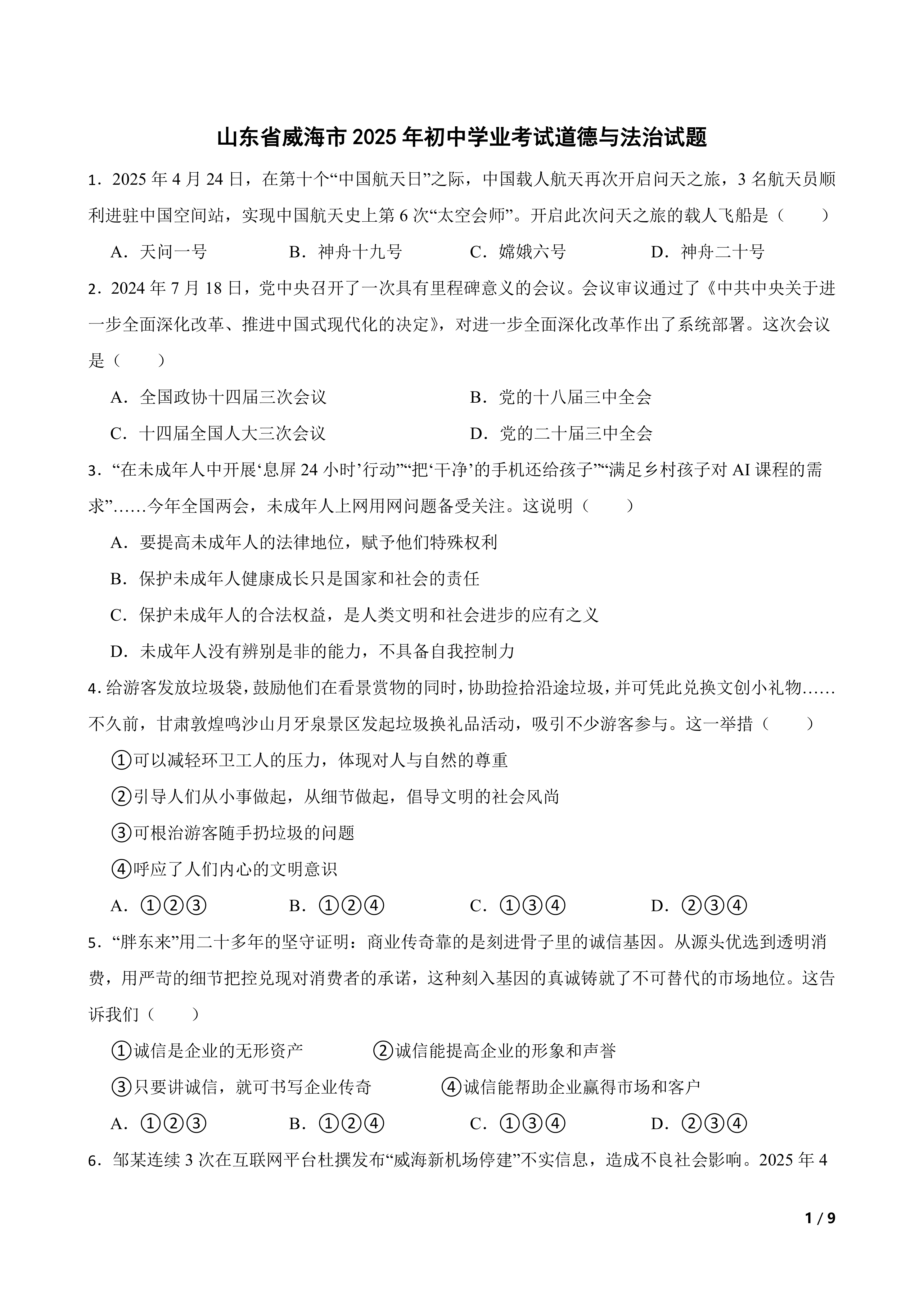 [中考真题]山东省威海市2025年初中学业考试道德与法治试题 时间:2025-10-27 热度:°C 加入收藏 我要投稿 点赞() 真题2025 上一篇:[中考真题]江苏省常州市2025年中考道德与法治真题 下一篇:返回列表